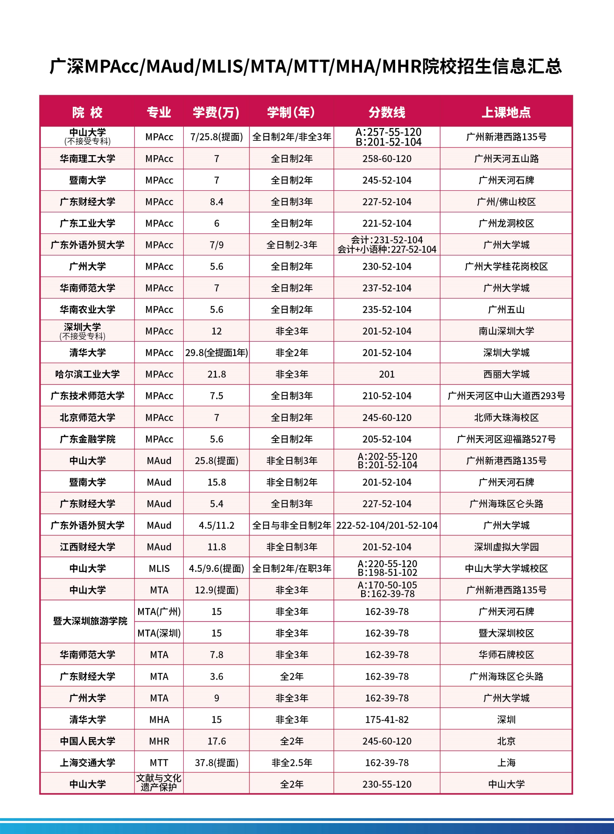 广东各院校MPAcc/MAud/MLIS/MTA院校招生信息汇总