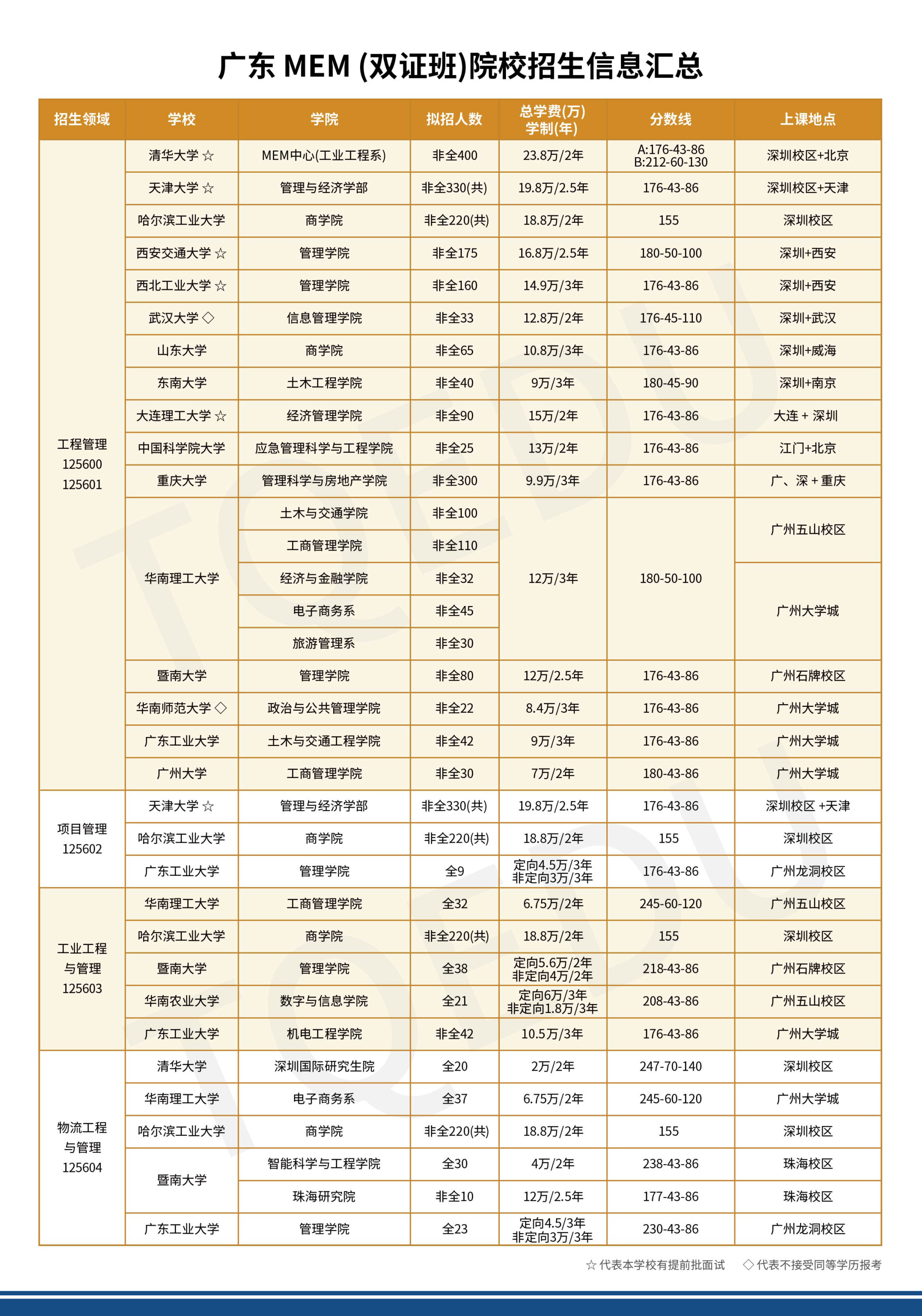 广东各院校MEM(双证班)院校招生信息汇总
