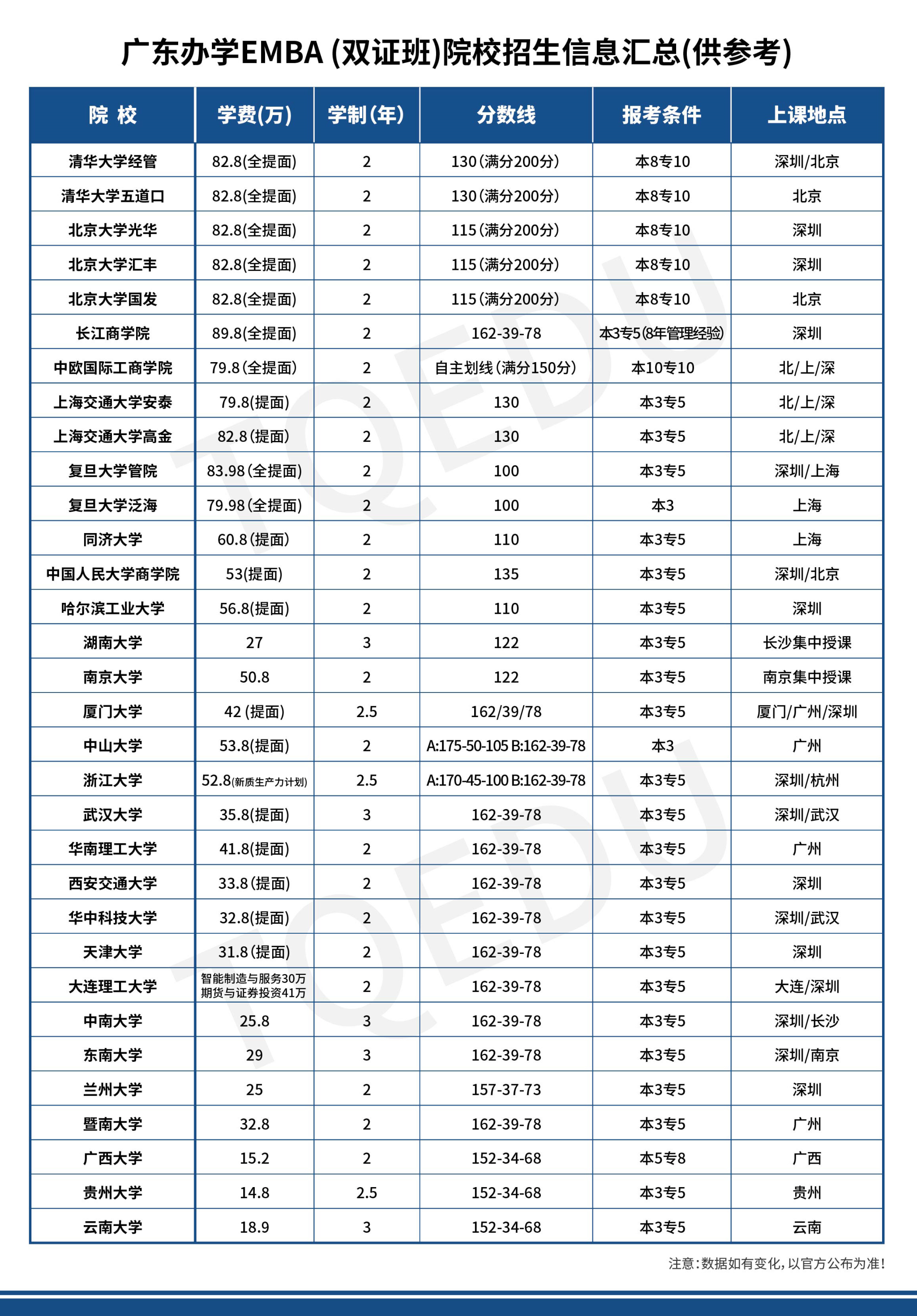 广东各院校EMBA(双证班)院校招生信息汇总