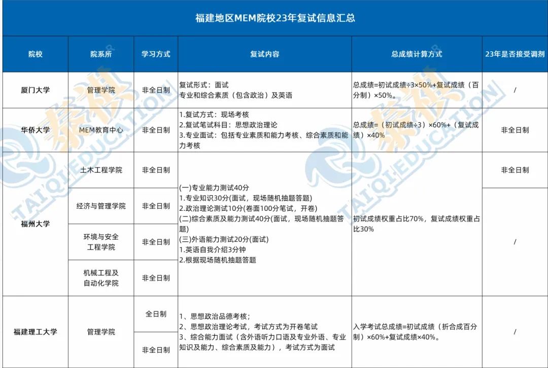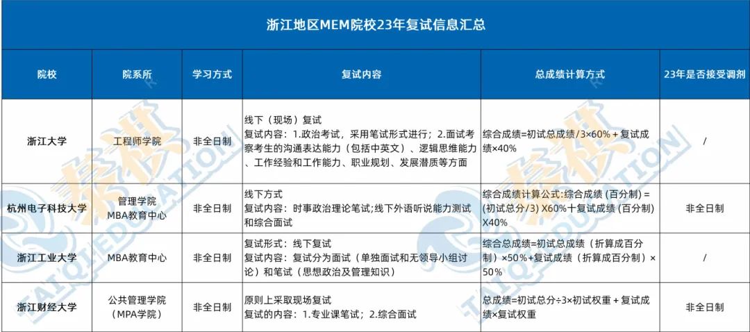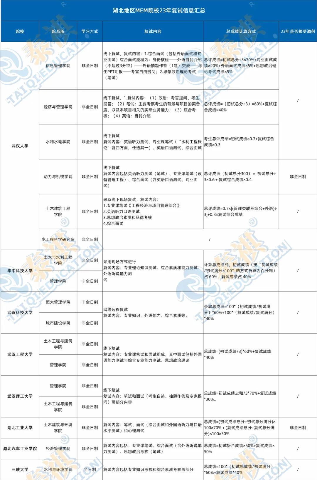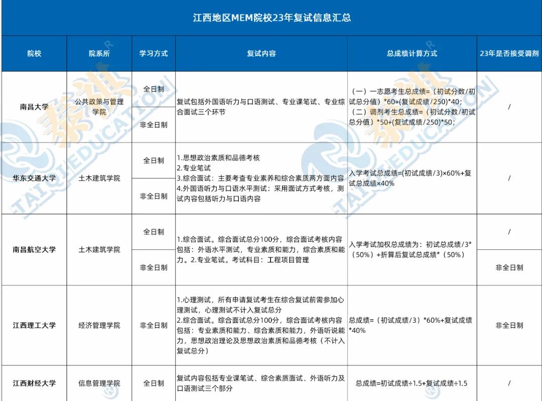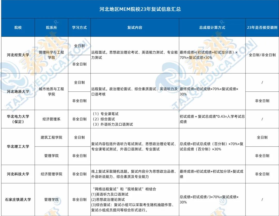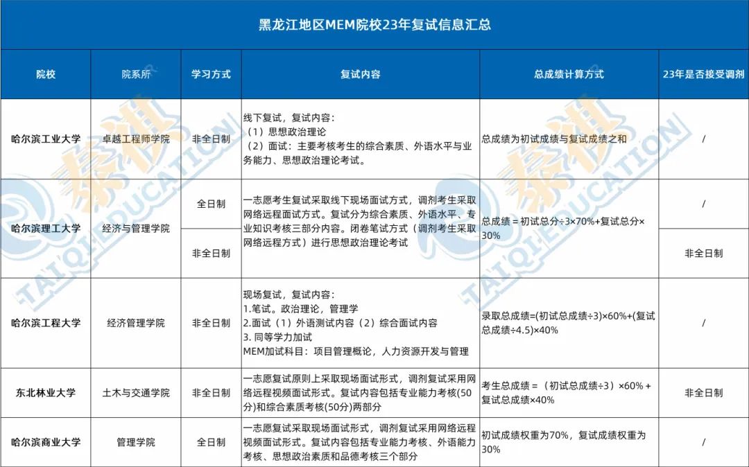MEM不同院校的具体复试内容、复试流程、总成绩占比各有不同,今天我们就给大家整理了2023年MEM院校的复试调剂情况,给今年考研的宝子们参考一下哦~