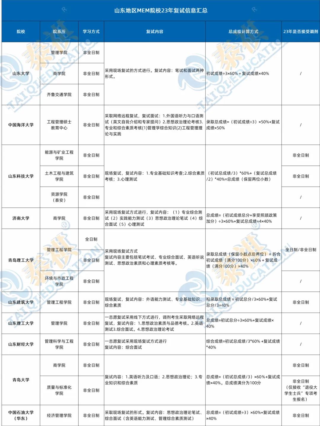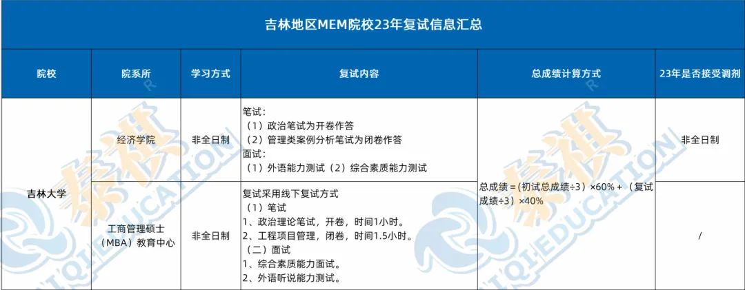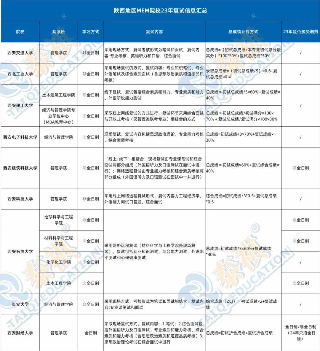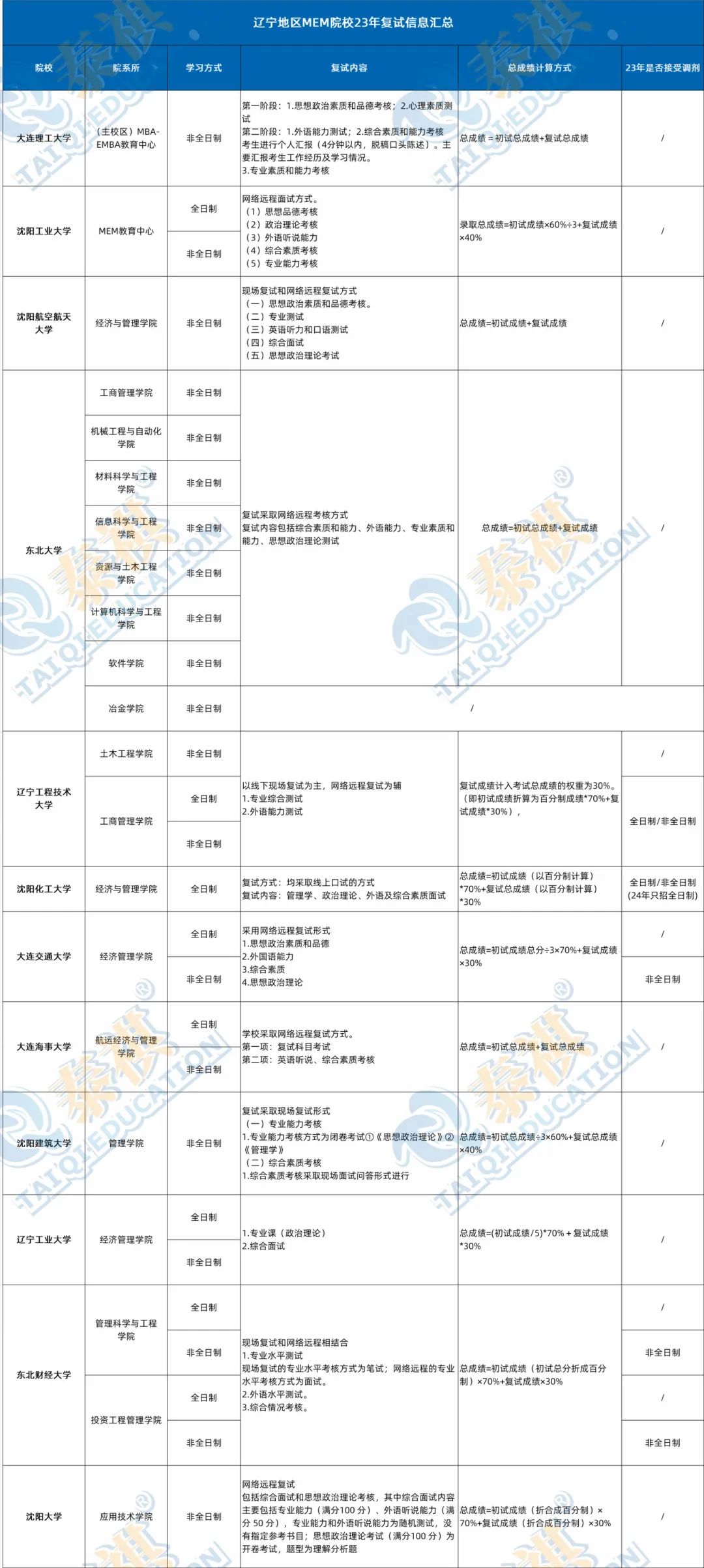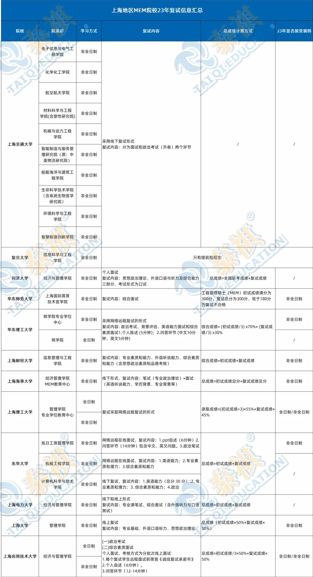 MEM不同院校的具体复试内容、复试流程、总成绩占比各有不同,今天我们就给大家整理了2023年MEM院校的复试调剂情况,给今年考研的宝子们参考一下哦~