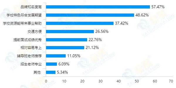 关于泰祺教育2020年学员择校的因素(多选),如图5所示,高校的品牌知名度、学校特色符合期望及高校资源三项大家最为重视。说明同学们的择校非常理性,高校的品牌价值,高校的综合实力是吸引考生报考的首要因素;也有26.56%的考生关注交通便利与报考难度等客观因素;辅导班老师的推荐及招生老师的的专业度也在考虑之列。