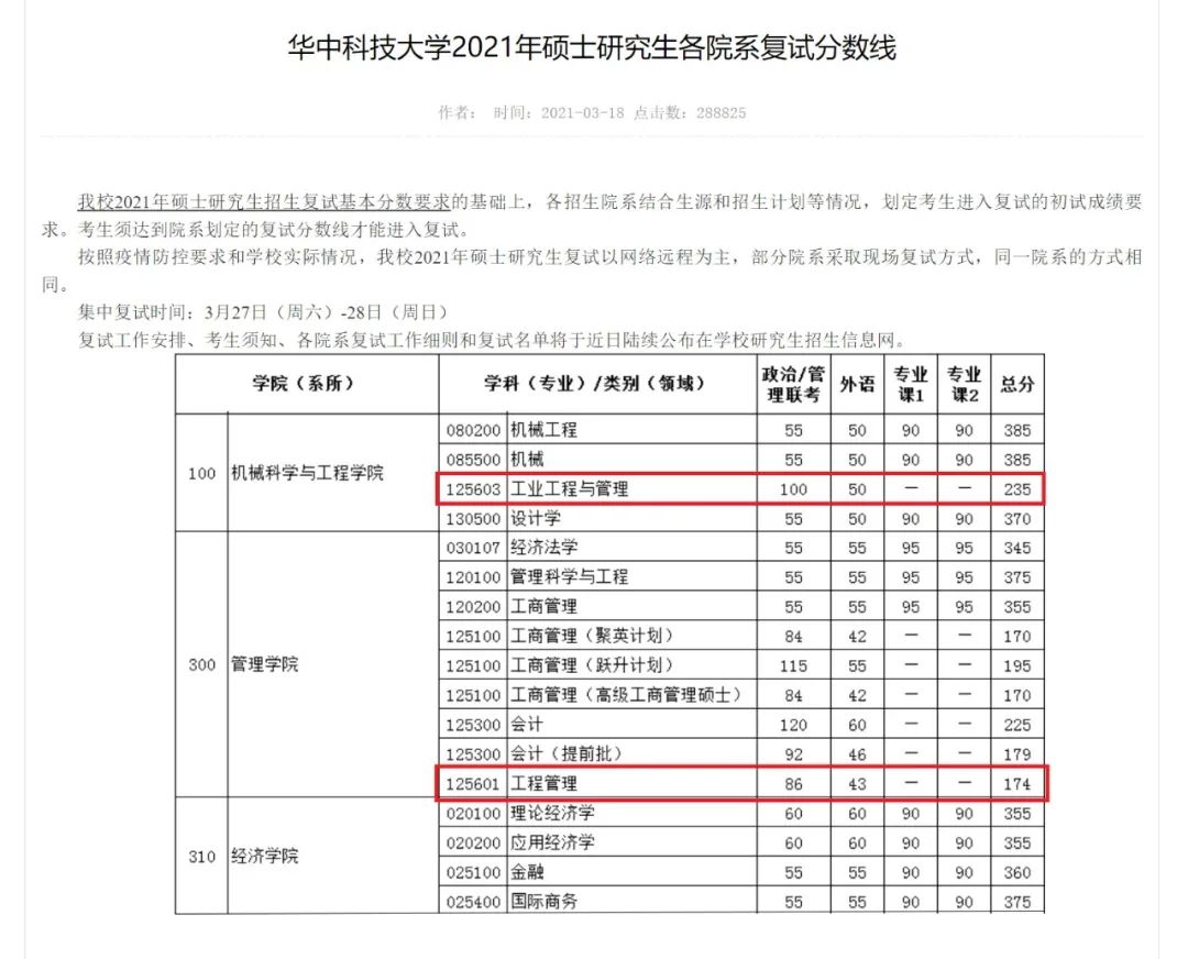 例如:华中科技大学2021年非全日制MEM工程管理方向复试分数线为国家线174/43/86,但是全日制及非全日制MEM工业工程与管理方向则为235/50/100分,可见两者差距是巨大的。而其全日制MPAcc专业的复试分数线225/60/120,总分要求低于MEM工业工程与管理。