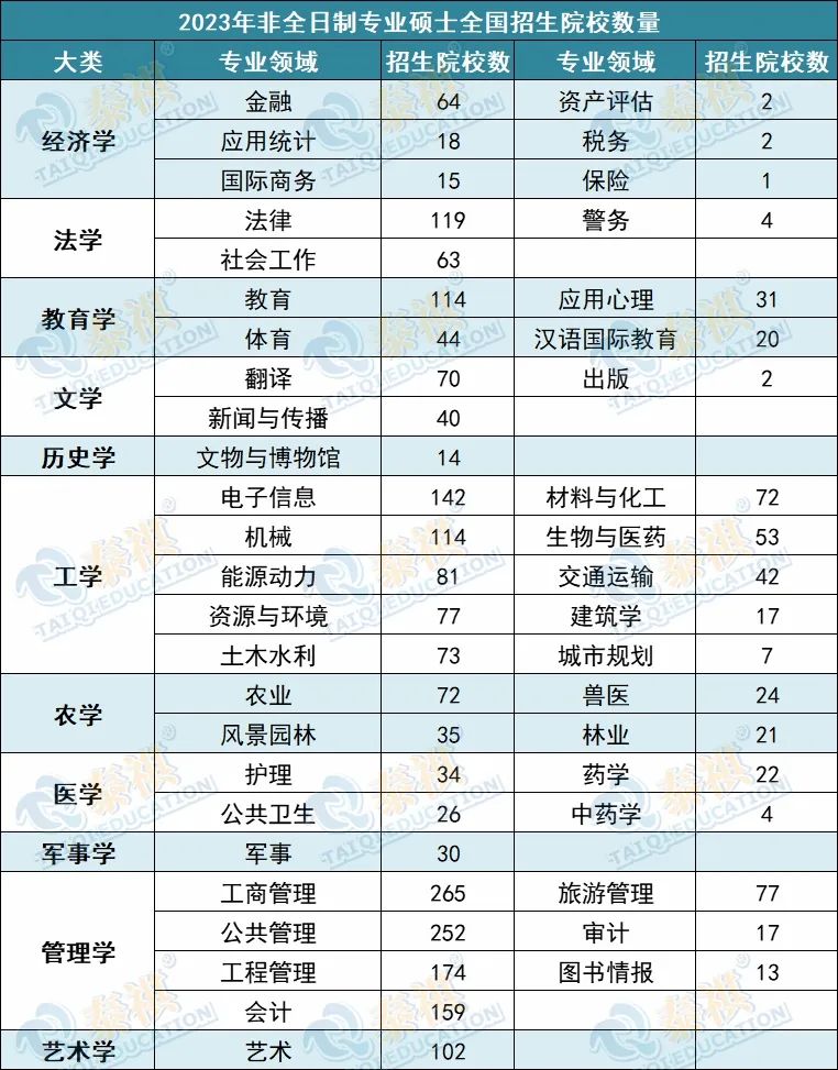 不同专业招生院校数量差距比较大,所以同学可选院校范围就不一样,有的专业虽然招非全日制,但是学校数量非常少,