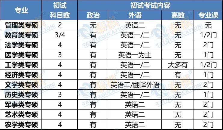 教育类专业,体育、应用心理只考3门,教育、汉语国际教育专业考4门,并且汉语国际教育要考英语一,而另外几个专业基本都是考英语二。