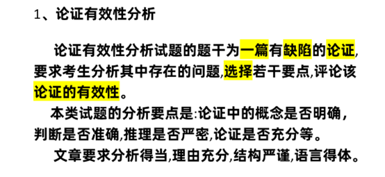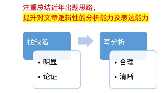 ①“题干为一篇有缺陷的论证,要求考生分析其中存在的问题“意在要求寻找论证过程中的缺陷。今年依旧是“一篇”,强调对全篇统筹的逻辑分析,这是目前考试一个新的方向。