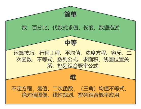 管综数学试卷主体构成简单、中等、难三部分,具体可以见下图: