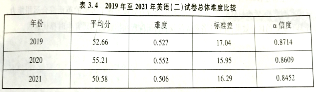 官方目前只公布了2019-2021年英语(二)的试卷总体难度比较,可以看得出这三年平均分都是50+,可见英语(二)考50分难度不大。