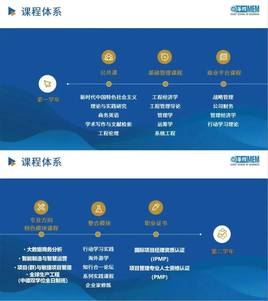 👉专业核心课程(提升综合素养,根据专业不同有所区别):领导力与领导艺术、战略管理、市场战略与创新交叉、人力资源管理等。