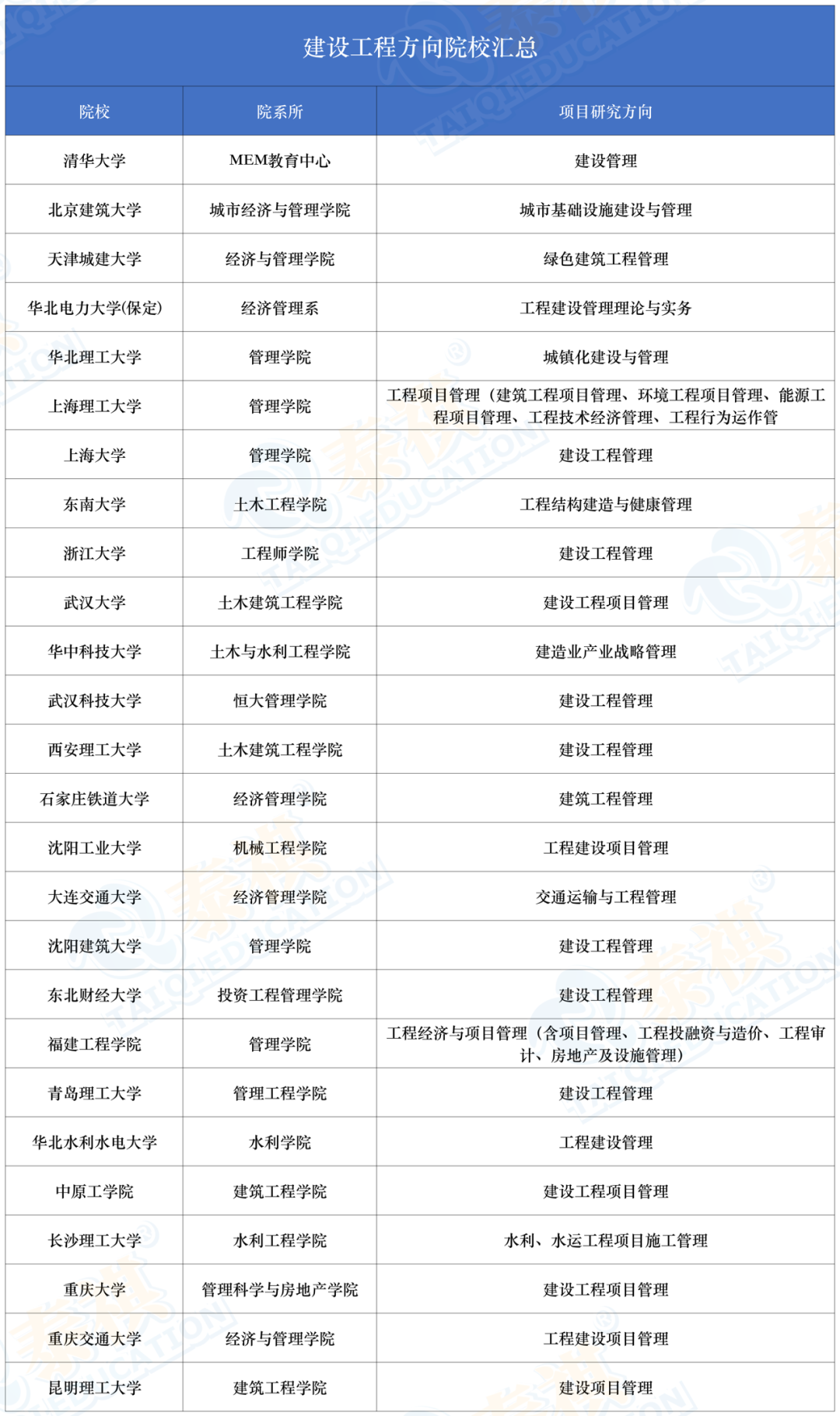 基建的大配套,往往代表着一个国家建设的能力。有人说,“MEM是重大工程建设项目实施中的管理者必备”,足以凸显MEM在建设工程领域的地位!开设建设工程方向的MEM院校也着实不少。