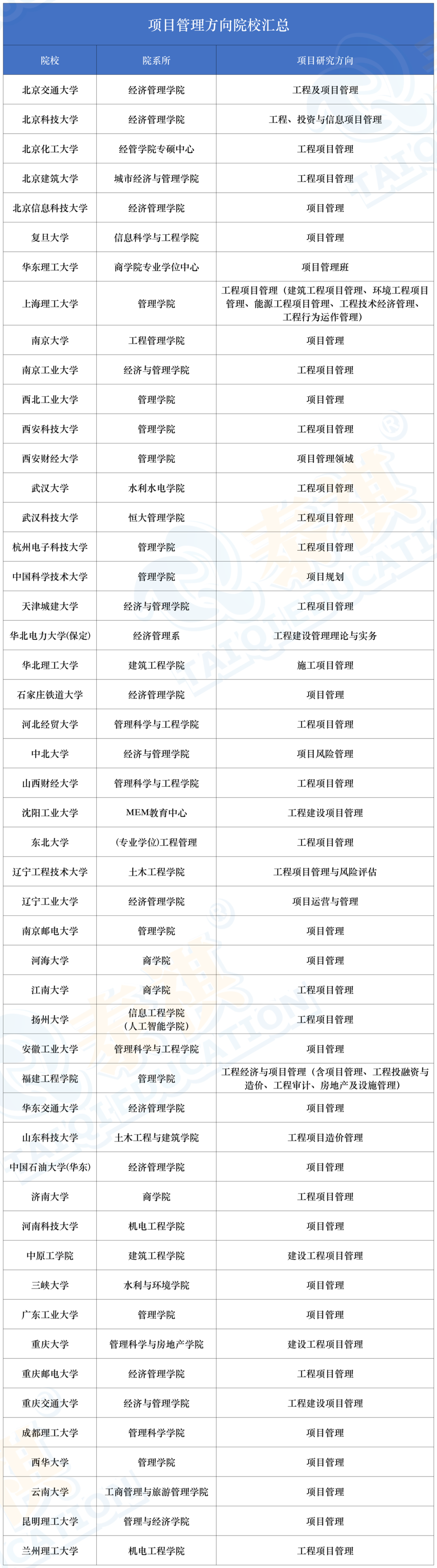 项目管理实施领域宽泛,既需要管理学、经济学知识及能力,又需要项目决策、过程管理的能力。这个方向培养出来的必定是综合能力较强的人才。