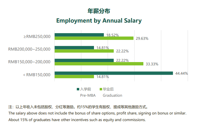 据中山大学管理学院2018届全日制MBA毕业生就业报告,毕业后对比入学前,学员年薪下限区间小于15万人数占比减少30%左右,年薪上限区间大于等于25万人数占比增加11%左右,也在一定程度上说明薪资有所涨幅。