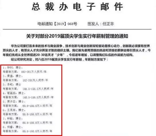 今年7月23日,华为总裁办发布了一封邮件,宣布对8位2019届应届博士毕业生实行年薪管理制度。这些应届生们的年薪,最高有201万,保底的也有89.6万。这样的高薪聘请,也侧面表现了科技公司对于高精尖人才的“渴望”。