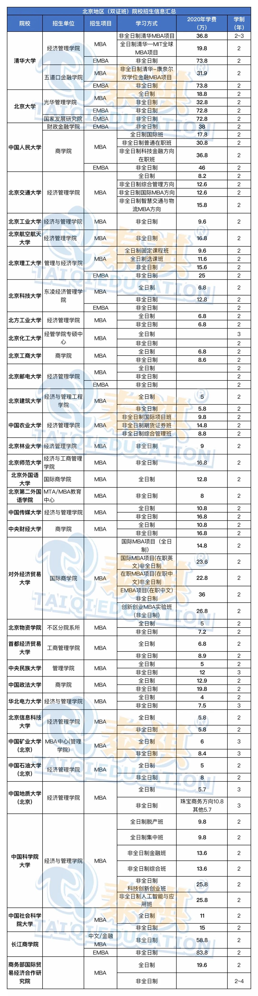 以北上广地区为例,MBA学费在5-60万不等,也就是说最低你需要花费5万元的学费来学习MBA课程,这其中不包含书本费、学习期间的游学费用(具体根据学校安排与个人意愿)