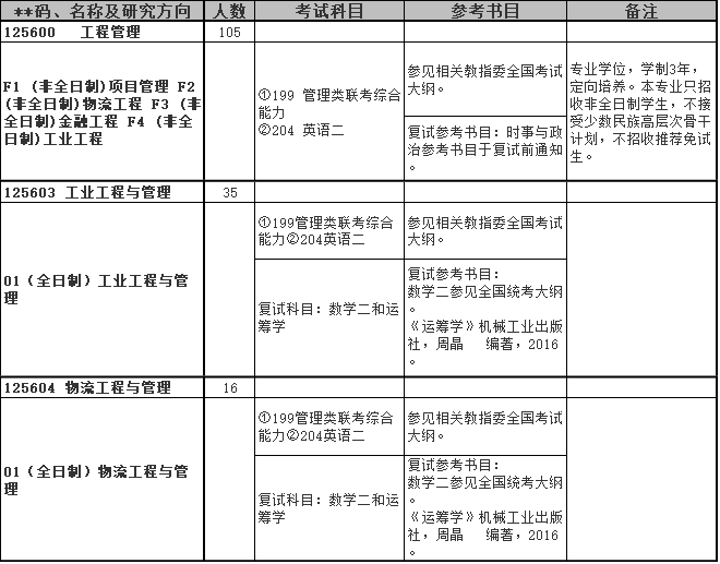 MEM03、04方向是参加管理类联考,初试相对普研简单很多,也因此吸引了很多本科应届生的关注。就报考条件而言,各类专业背景的本科应届生都可以报考。125603对应原工业工程领域,125604对应原物流工程领域,所以本科为相关专业领域的考生都可以报考。其他专业考生未来想要从事相关行业或职业也可以报考。