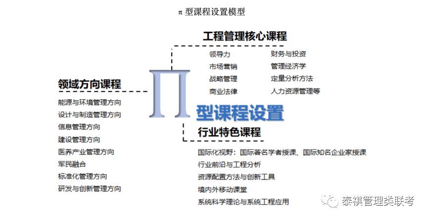 清华工程管理硕士学科的课程设置是以模块的方式进行,主要力求工程与管理的最佳结合,既有管理类的核心课程,也有工程技术方面的专业领域课程,还有行业特色模块,培养跨领域复合的π型管理人才。