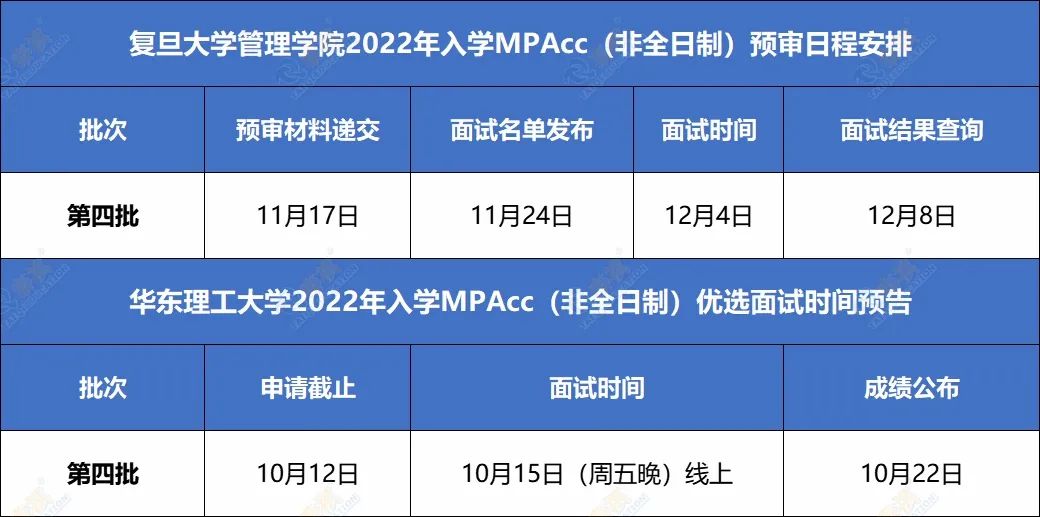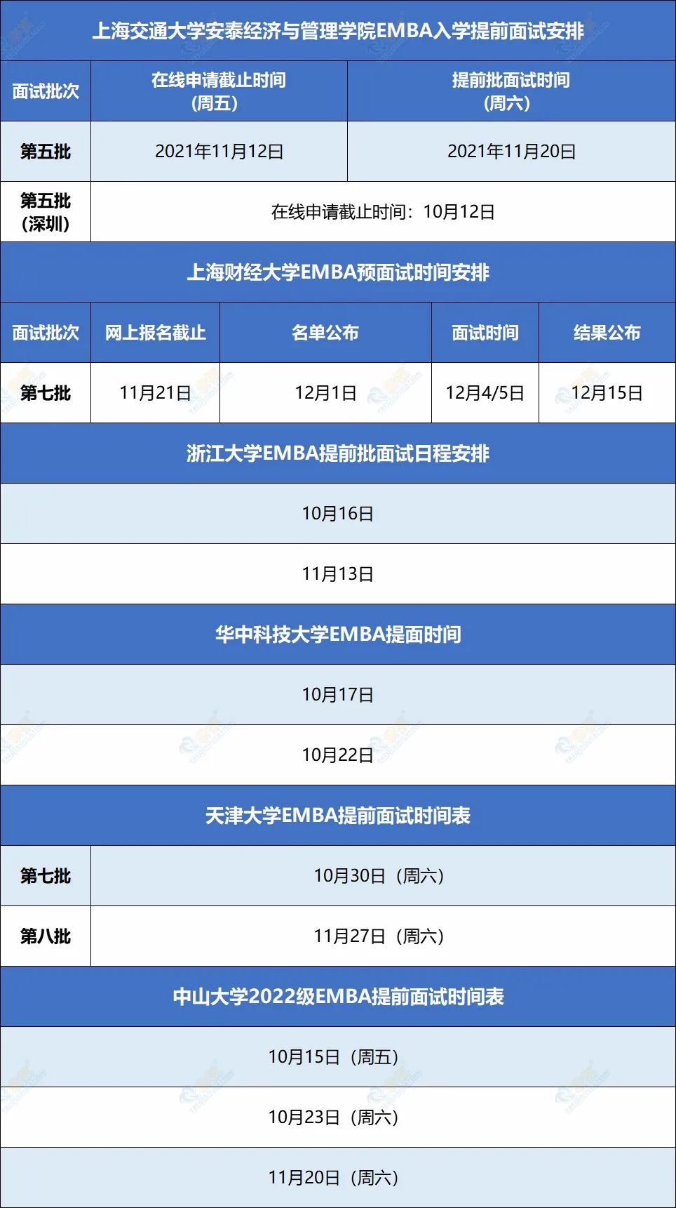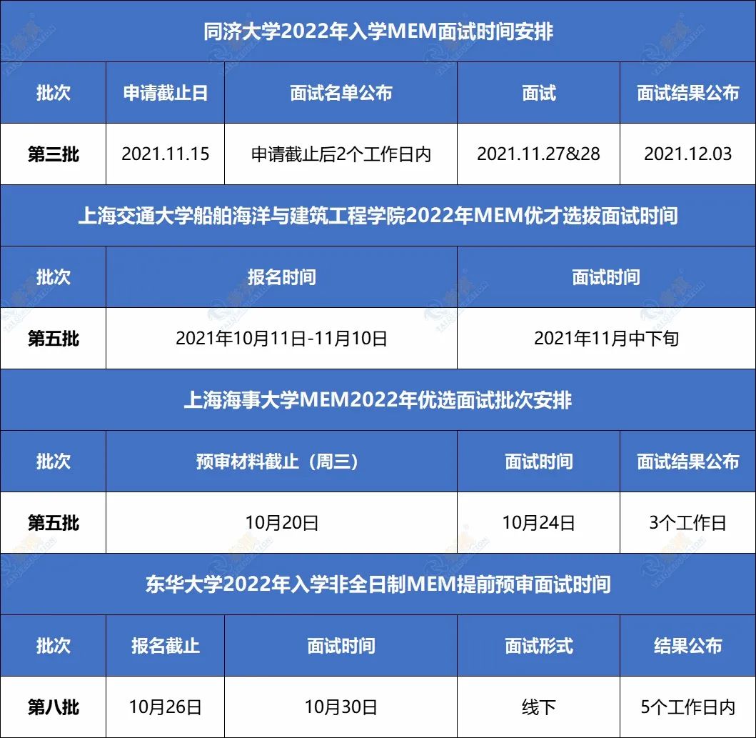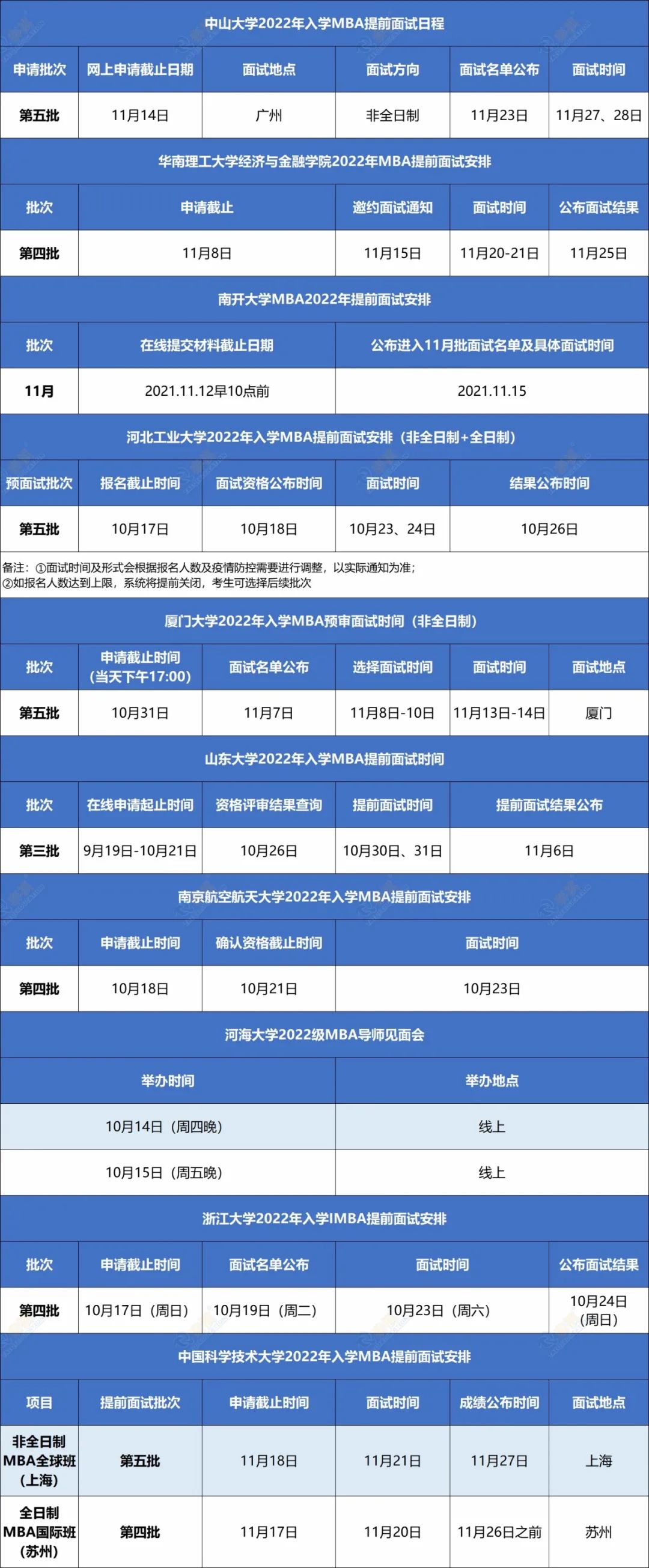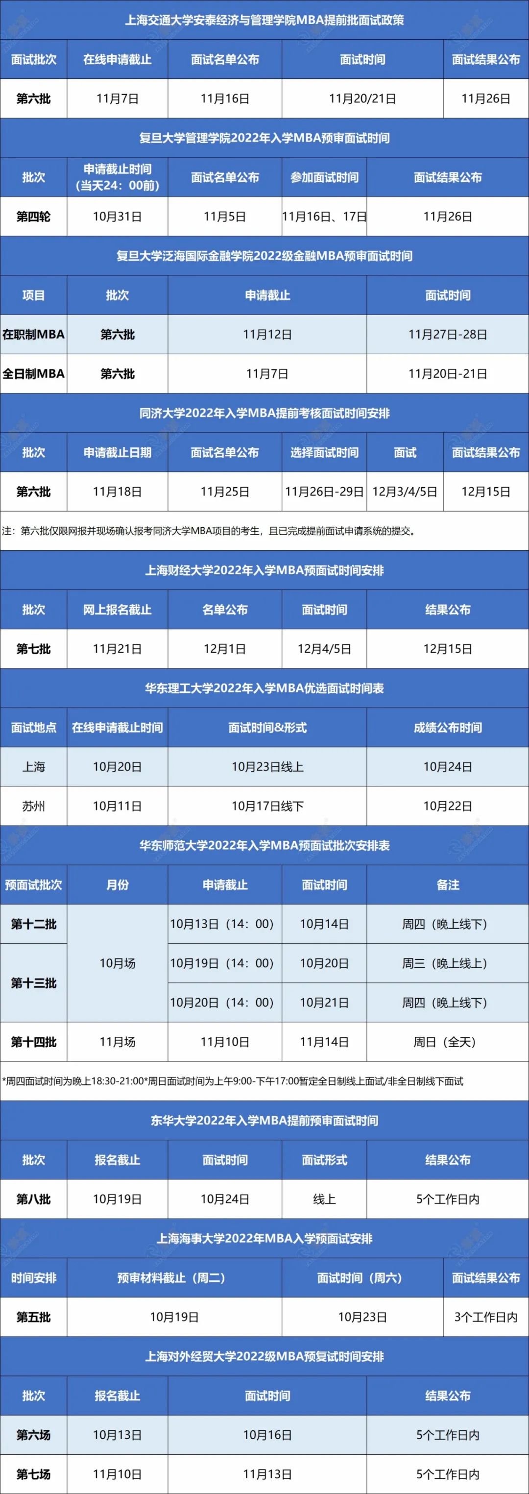 这里给大家整理了MBA/MEM/MPAcc/EMBA几个专业的提前面试剩余批次,请大家抓紧时间赶上这班末班车!