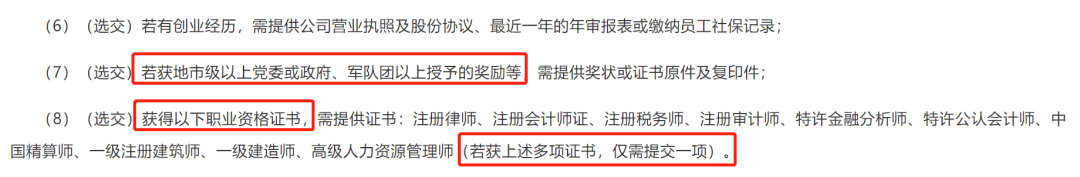 若有荣誉证书仅限地市级以上党委或政府、军队团以上授予的奖励等;