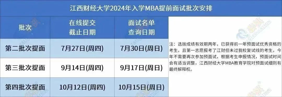 其实,有一部分院校为了减少这种情况的发生,他们在提面公告里特地强调MBA提前面试成绩有效期可以延长至第二年!这就意味着,哪怕你今年提面优秀但笔试落榜,明年也可以以提前面试优秀者的身份,直接参加统考!