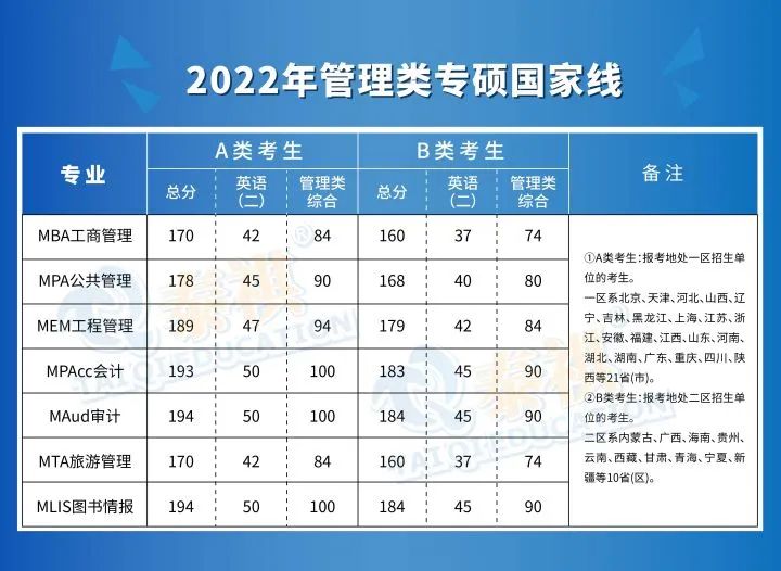 2022年管理类专硕考研国家线,除MBA、MTA和去年持平,其他专业都有明显上涨!