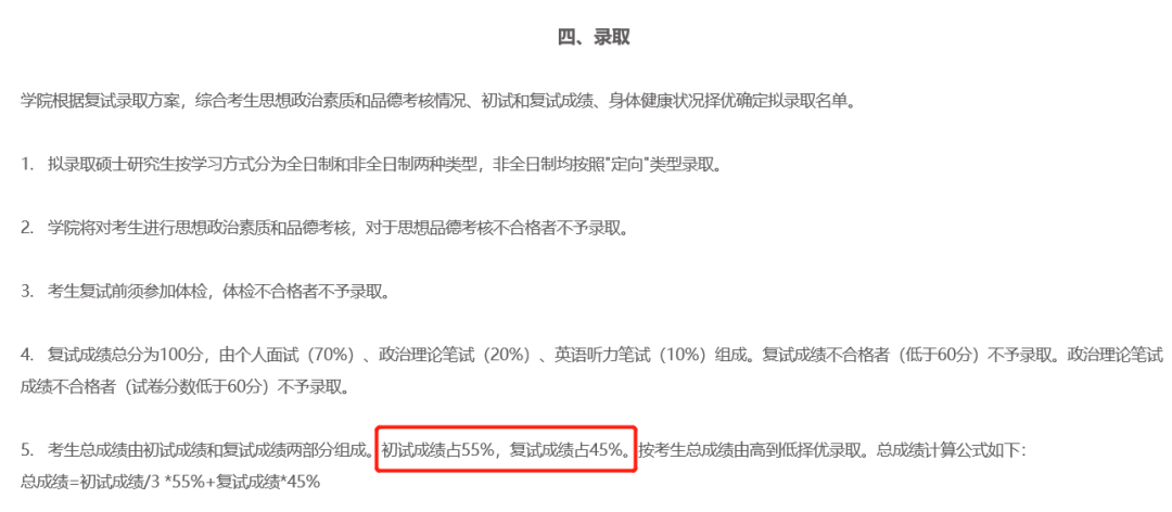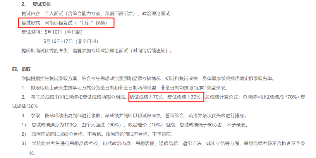 最近几年因为是线上复试,一些院校对复试占总成绩的比例做出下降的调整,而线下复试,复试占总成绩比例往往更高。