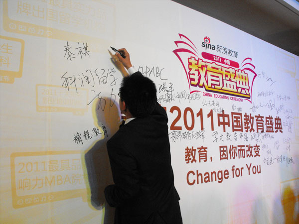 2011年12月10日下午,主题为“教育,因你而改变”的新浪2011中国教育盛典在北京万达索菲特大酒店举行。新浪中国教育盛典成功举办了三届,已成为国内、具有影响力的教育行业评选活动。