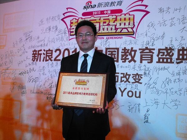 此界教育盛典,泰祺集团再获殊荣,荣获“2011具有品牌影响力教育连锁机构”!