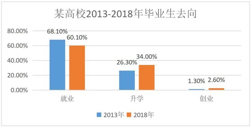上图清晰展示的是:关于某高校从2013年到2018年,毕业生去向的比例存在一些变化。