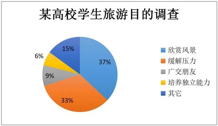上图清晰展示的是:关于某高校学生旅游目的的比例,存在一些不同。