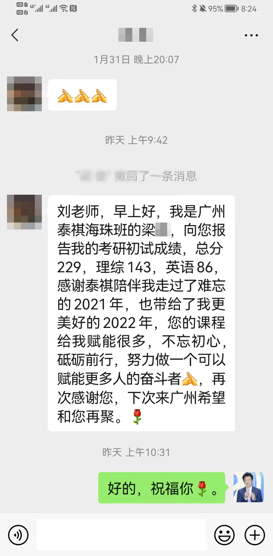 2022考研成绩,已于昨日陆续公布,不少同学都已查到了自己的分数。每年成绩公布时,都是最振奋人心的时刻!看着刷屏的喜报,仿佛看到了那每张成绩单的背后,努力了一年的同学们,得偿所愿的喜悦;看到每一位泰祺老师由衷的骄傲和抑制不住的激动神情!!!