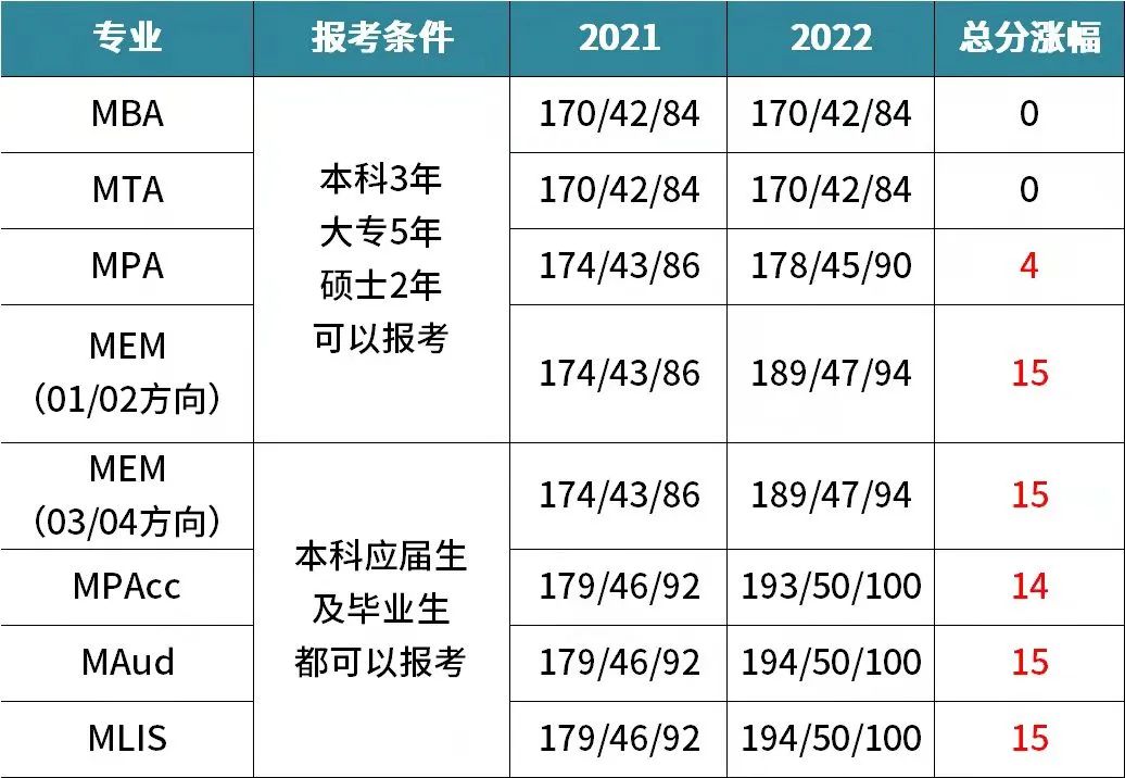 近几年报考人数越来越多,从今年的国家线也可以看出,管理类专硕7个专业,其中有4个专业的国家线都是上涨14-15分的,这也反映了管理类专硕竞争非常激烈。