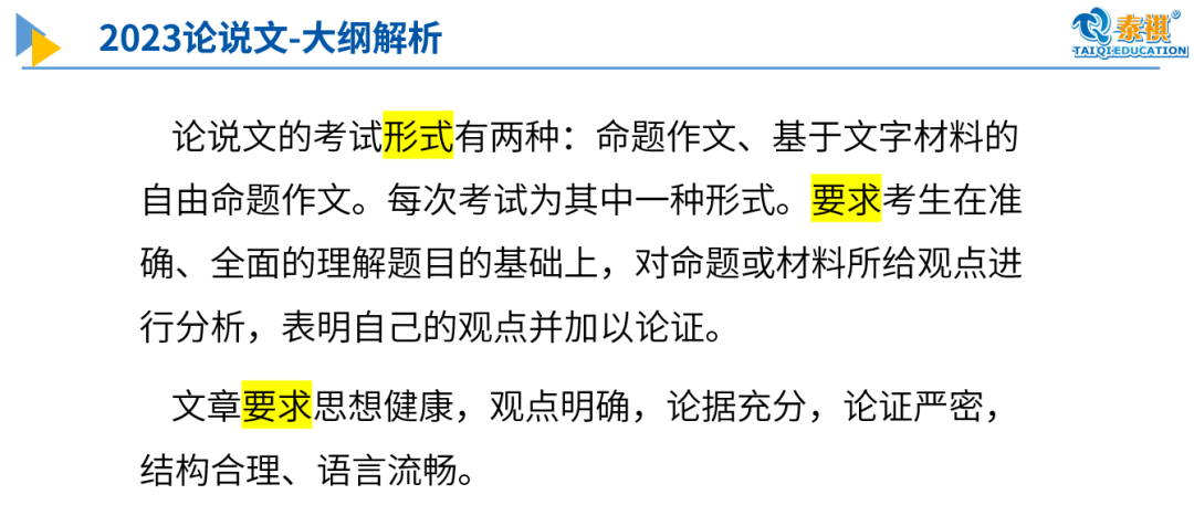 泰祺教育语文写作教研组组长苏芳老师指出,2023年管综写作部分的考试大纲,和去年相比没有变化。主要考查考生的分析论证能力和文字表达能力,对文学素养有所弱化。她为大家详细解读了管综写作大纲。