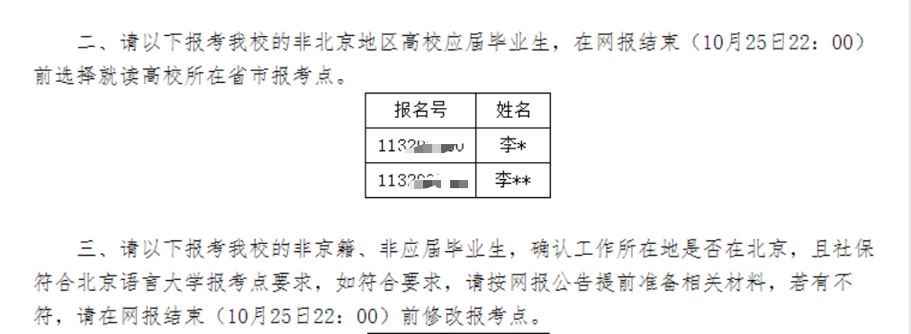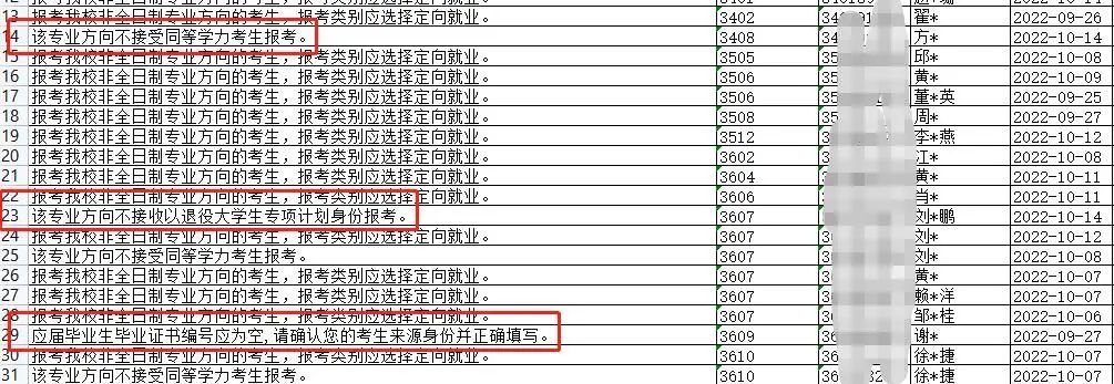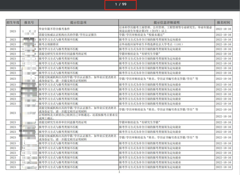 距考研正式报名结束只剩7天!随着越来越多的同学完成报名,各大院校也陆续公布了报名不合格的名单。比如,北京大学公布了整整99页的核对(修改)名单;北京语言大学特地在通知里注明“凡不按要求报名、网报信息误填、错填或填报虚假信息而造成不能网上确认或考试的,后果由考生本人承担”。