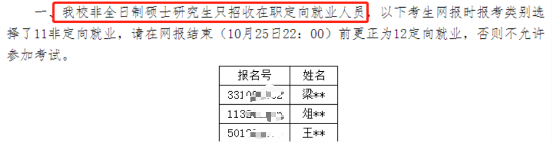 报考非全日制的考生,要仔细查看报考院校的招生简章要求,根据相关要求将报名信息修改为“定向就业”。