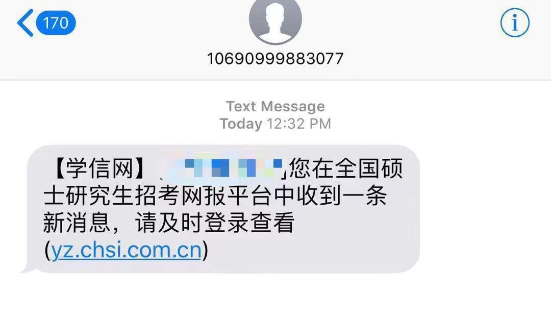 很多同学在报名完第二天会陆续收到研招网短信,如: