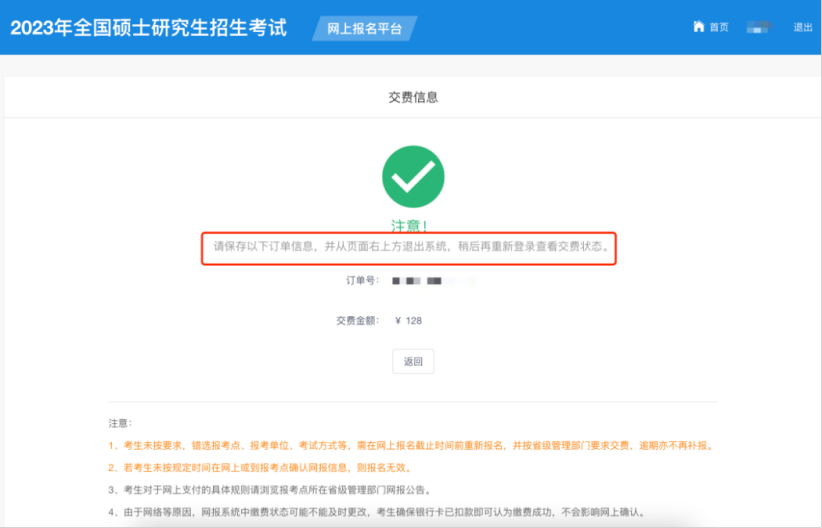 在网上报名截止日期(10月25日)前,以“网上支付”方式缴纳报名考试费,否则报名无效。成功缴费后,会出现以下界面,就可以等待网上确认了。