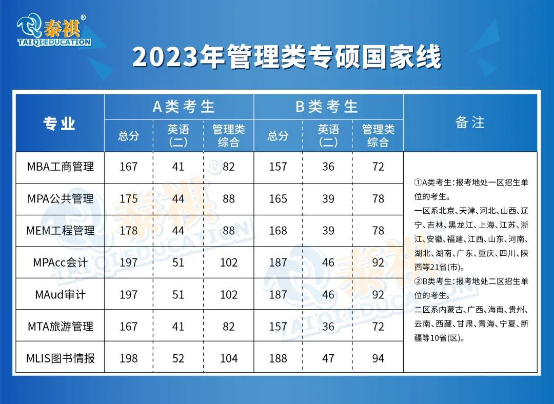 2023年管理类专硕考研国家线,除MPAcc、MAud、MLIS上涨,其他专业都有下降!