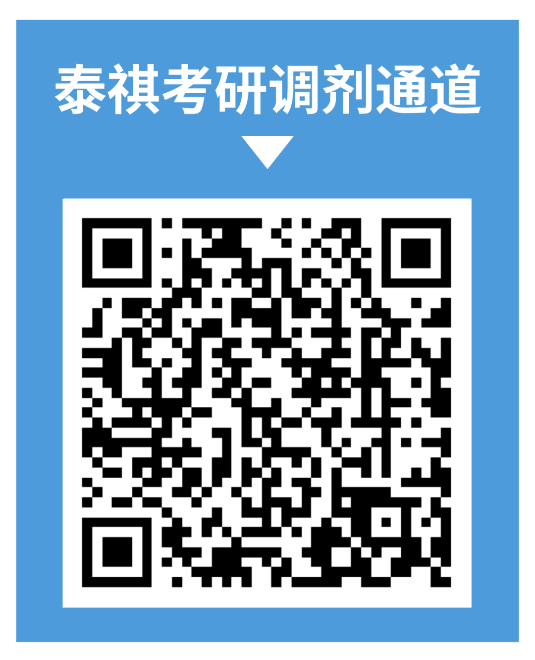 希望祝福大家都能调剂到满意的院校,成功上岸!对于调剂有任何疑问的,也可以扫描下方二维码,会有泰祺老师指导调剂!