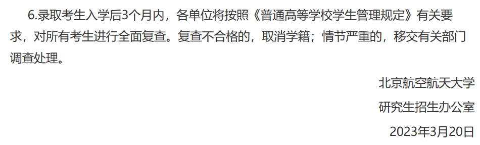 入学三个月内,一般院校会对所有考生进行全面复查,包括初试和复试过程(含提交的所有资格审核及其他材料等),一旦复查不合格,则会直接取消入学资格,情节严重者会移交有关部门处理。