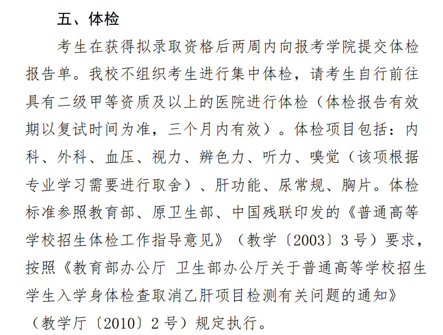 具有拟录取资格的考生可在当地二甲及以上医院参加体检,按照院校提供的要求进行体检,并提供盖章有效的体检表即可。