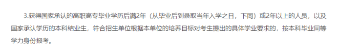 根据《全国硕士研究生招生工作管理规定》第四章报名人员条件,高职高专学历毕业后满2年或2年以上,按本科毕业同等学力身份报考。