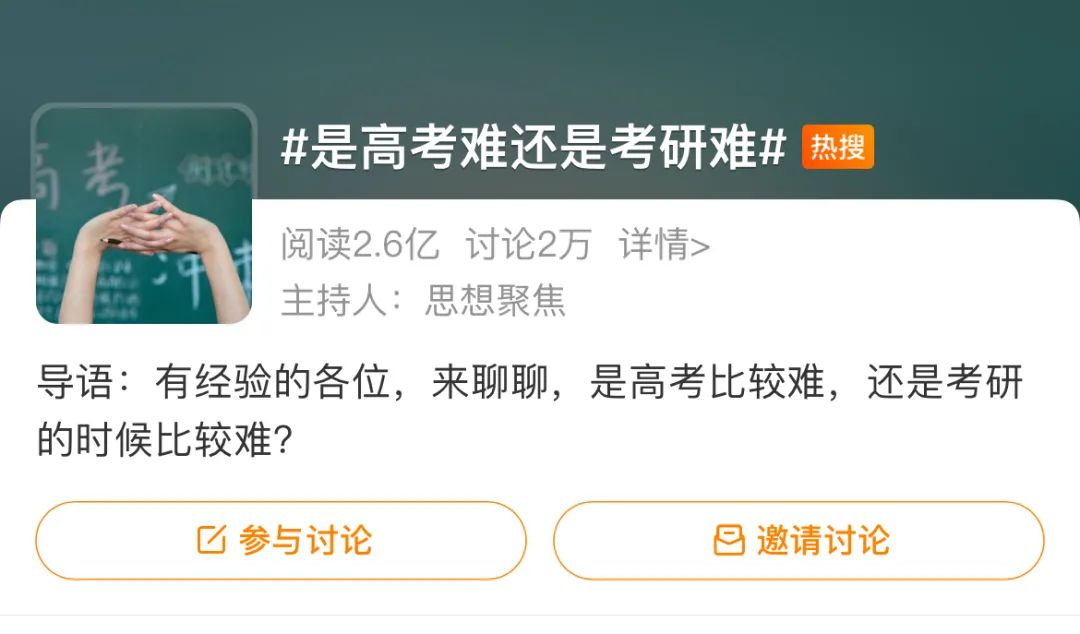 高考和考研应该是绝大多数人生命中最重要的两场考试。那么这两个最重要的考试究竟哪一个更能影响人生,改变命运呢?