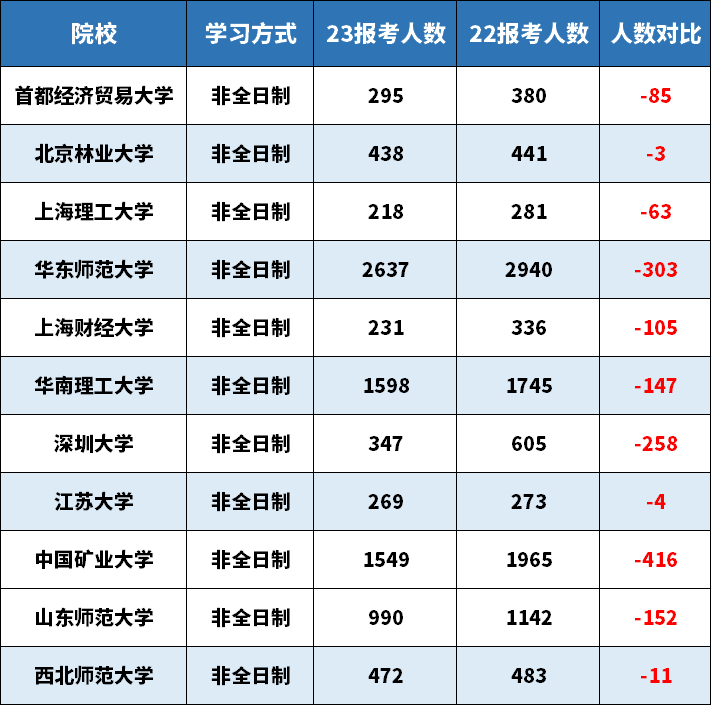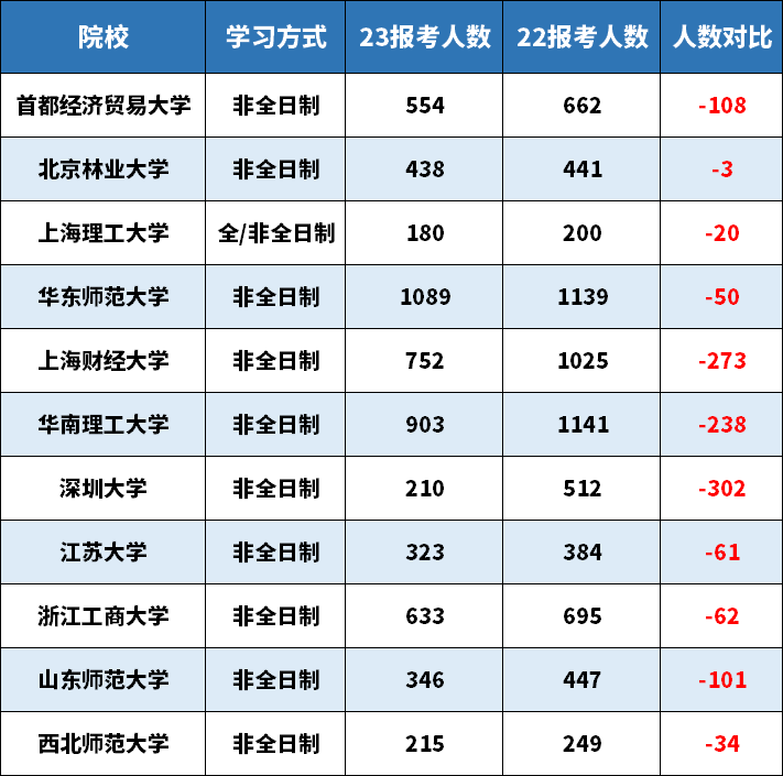 但不是每所院校都会公布报录数据,我们整理了15所已公布23年最新报考和录取人数的院校,分别有: