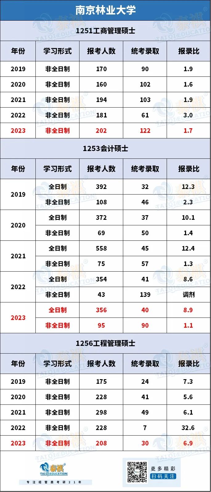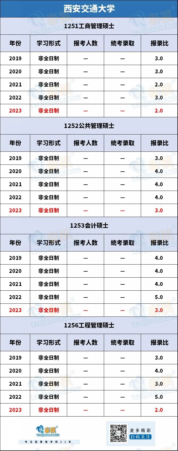 通过23年的报录比数据我们可以看出来,非全日制MBA/MPA/MEM都属于报录比较低的专业,相对来说比较好上岸,对于在职人士来说比较友好。
