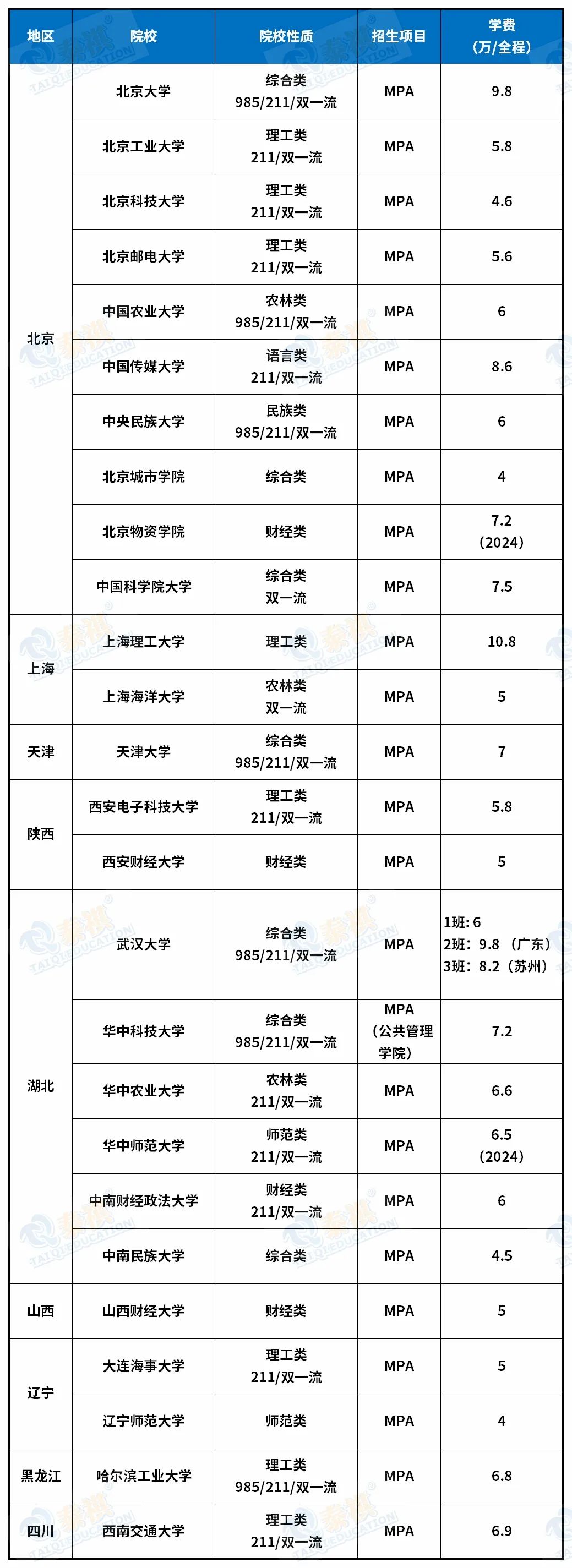 ①除特别标注2024外,其他院校的学费学制是参考2023年招生简章公布的情况。