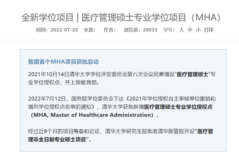 医疗管理硕士(MHA)