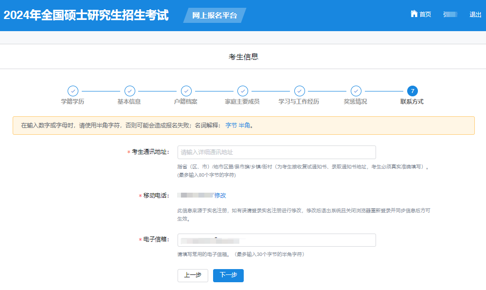 注意一定要填写有效的联系地址、电话、邮箱。这可是要接收招生单位的通知或复试通知书、录取通知书的关键信息哦!