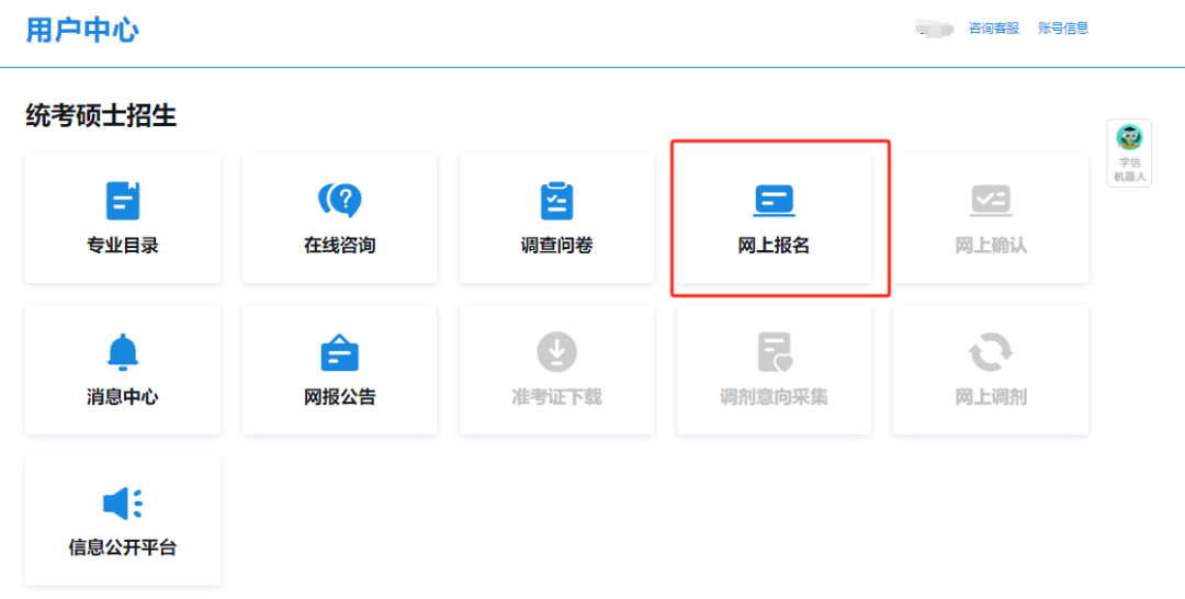 (网址:http://yz.chsi.com.cn/),点击“统考网报”,然后点击“统考报名”。