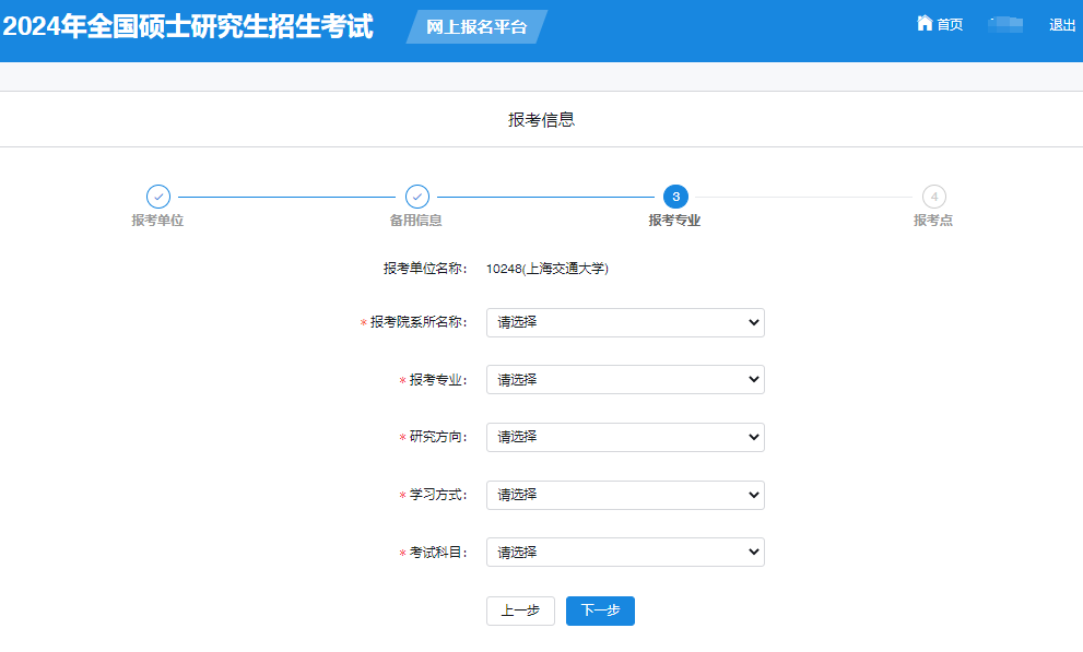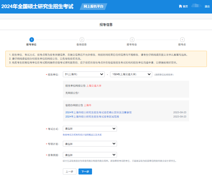 考生填写前一定要看清楚自己的“报考专业”和“研究方向”,看选项时要仔细,千万不要选错了哦!报考前,查看自己所报院校的网报公告,会有明确说明。(以下是以报考上海交大安泰非全日制MBA为例)