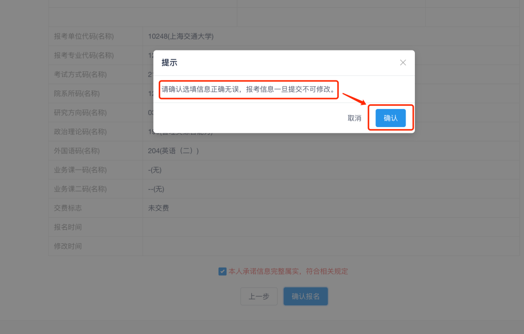 ●确认报考信息:仔细查看自己填写的信息,无误即可确认报名提交。